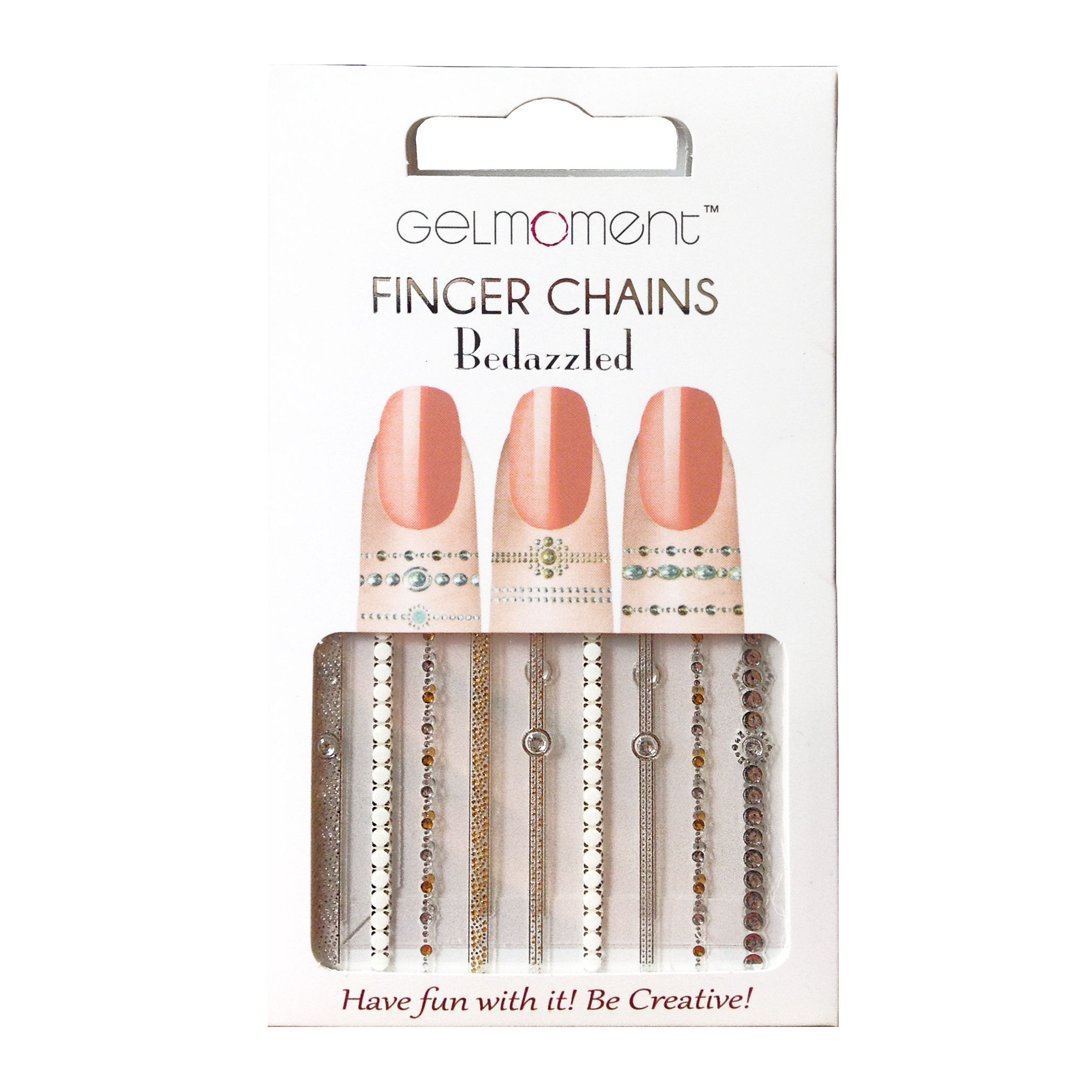 Why end the fun at your nails? Extend your creativity onto your fingers with the help of GelMoment Finger Chains. These self-adhesive "rings" draw the eye toward your beautiful GelMoment manicure. The cute stick-on finger decals can also be used to create a toe ring! Simply apply to the skin around your fingers or toes and enjoy! No glue required.