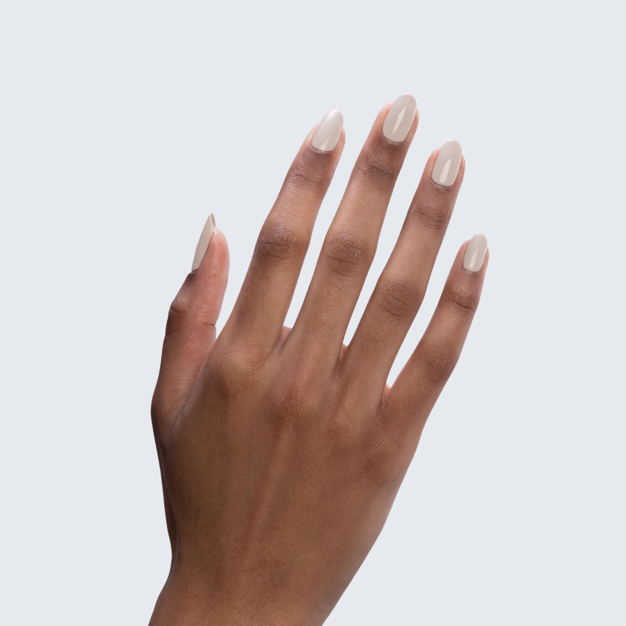 Beige. Pale. Nude/muted. Opaque. Warm undertone.