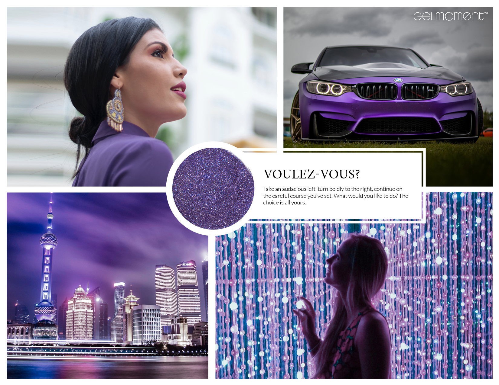 Royal purple. Medium-dark. Shimmer. Opaque.